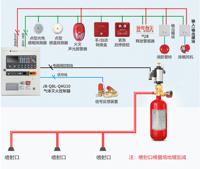 有单次和多次喷射,大小口径,根据应用场景,灵活多变。一般用于储能、机柜、除尘器等小空间。